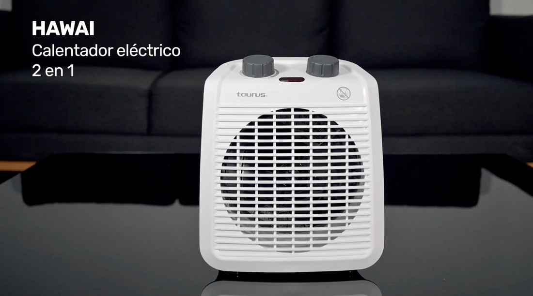 HAWAI es un producto con doble función que te mantendrá calientito los días más fríos de invierno, pero muy fresco en verano pues es un 2 en 1: Calentador y ventilador personal. HAWAI tiene dos niveles de potencia de calefacción con termostato regulable (alto 1500 W / bajo 750 W) y una posición para obtener aire refrescante. El sistema de calefacción de HAWAI es con resistencias, por lo que no necesita recambios.