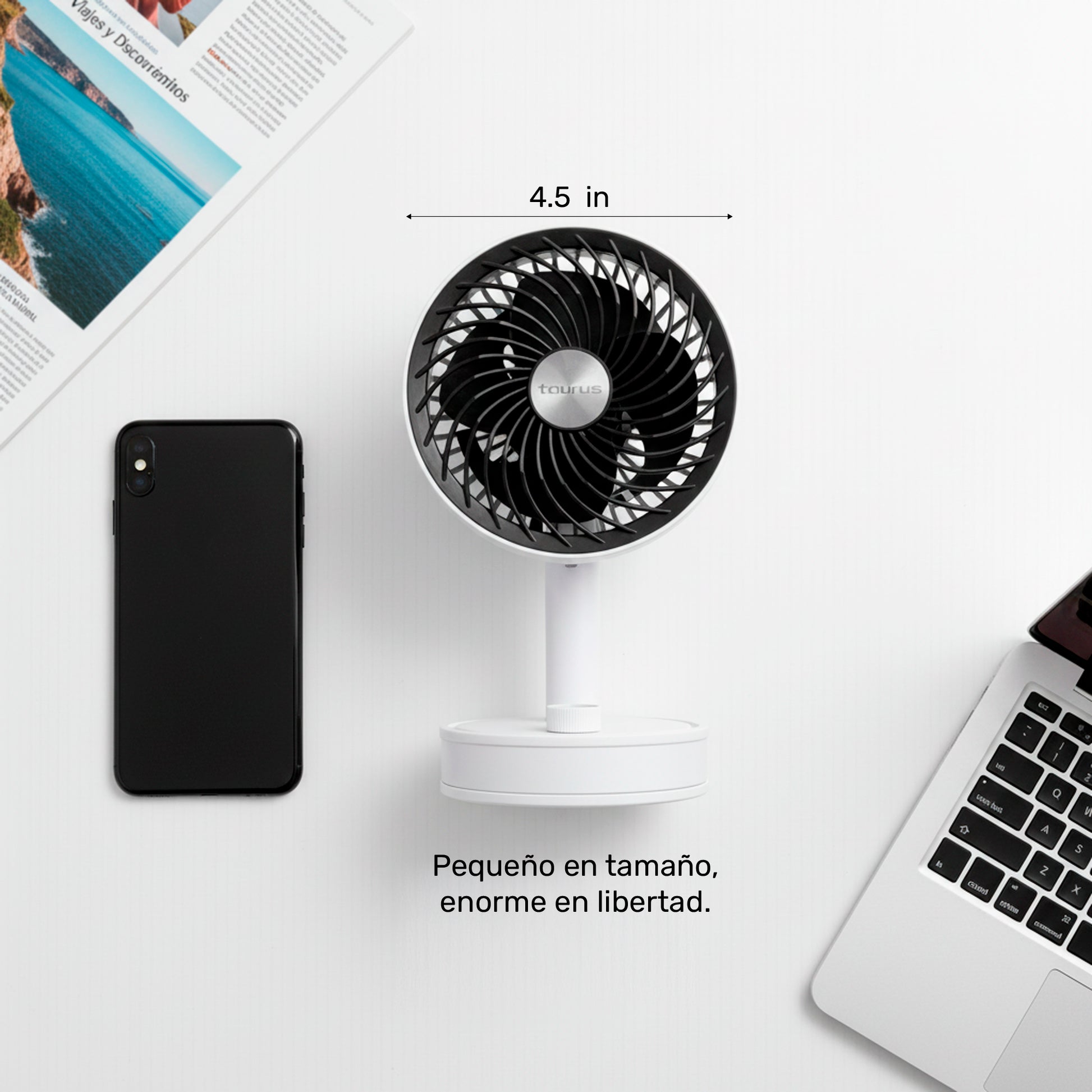 Disfruta de frescura inmediata con Taurus POCKET, el ventilador de escritorio compacto que se adapta a tu ritmo diario. Diseñado para ofrecer ventilación directa en espacios personales, su tamaño ultra compacto de 4.5” lo hace perfecto para escritorio, oficina, recámara o cualquier lugar donde necesites confort sin ocupar espacio.